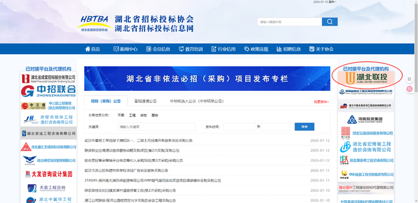 近日,湖北联投电子采购平台成功接入湖北省招标投标协会主办的“非依法必招项目发布专区”。此次接入不仅为湖北省招标投标协会会员单位及广大业主单位搭建了便捷高效的非依法必招项目公告发布渠道,也为平台供应商提供了更全面、更及时的项目信息获取入口,助力供需双方精准对接,有效降低信息不对称导致的交易成本,提升非依法必招项目的交易效率与流程透明度。