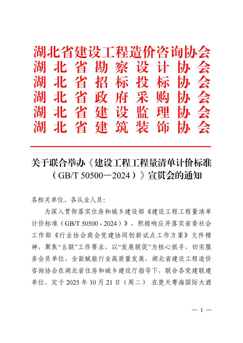 关于联合举办《建设工程工程量清单计价标准(GB/T 50500—2024)》宣贯会的通知