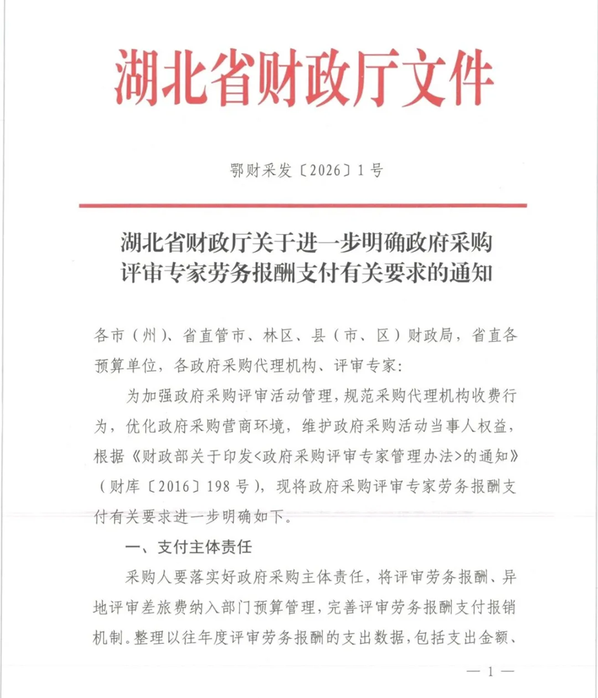 湖北省财政厅关于进一步明确政府采购评审专家劳务报酬支付有关要求的通知