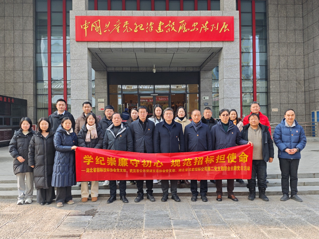 1月22日,湖北省招投标协会党支部联合武汉市公共资源交易协会党支部、湖北省成套招标股份有限公司第二党支部共同组织党员及入党积极分子,赴中国共产党纪律建设历史陈列馆开展“学纪崇廉守初心 规范招标担使命”主题党日活动。此次活动旨在通过实地研学与交流互鉴,进一步增强党性修养,激发使命担当,以高质量党建引领行业高质量发展。