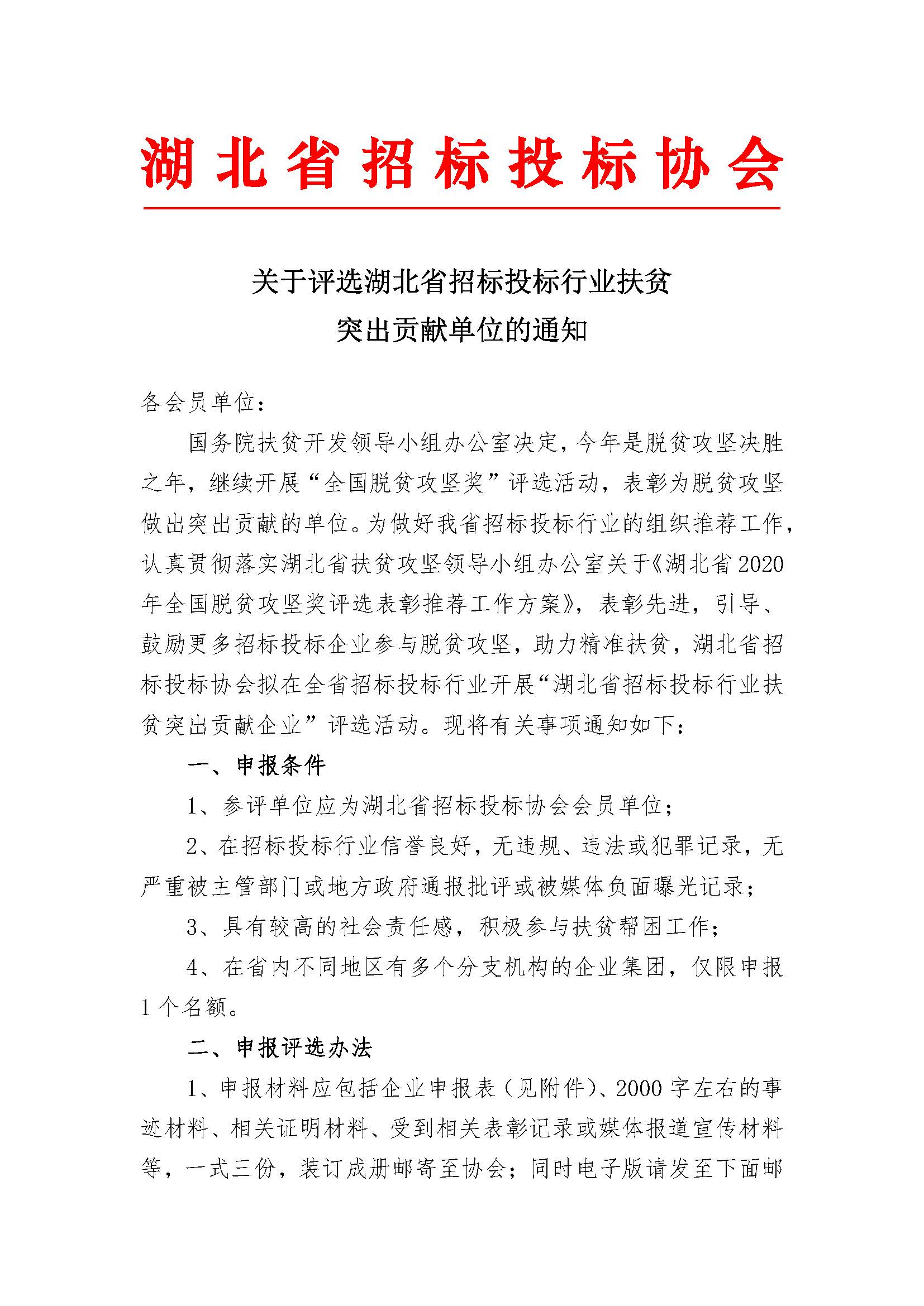 关于组织开展“湖北省招标投标行业扶贫突出贡献企业”评选活动的通知