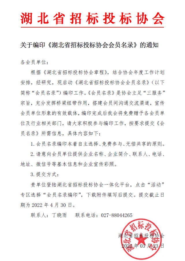 关于缴纳湖北省招标投标协会2022年度会费的通知