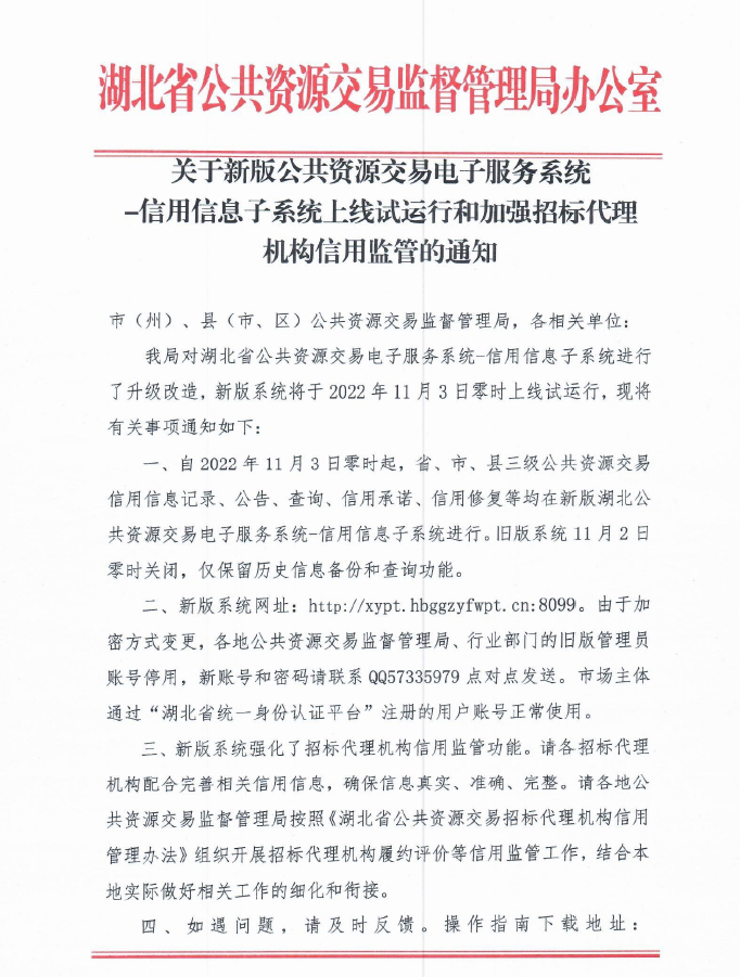 关于新版公共资源交易电子服务系统—信用信息子系统上线试运行和加强招标代理机构信用监管的通知