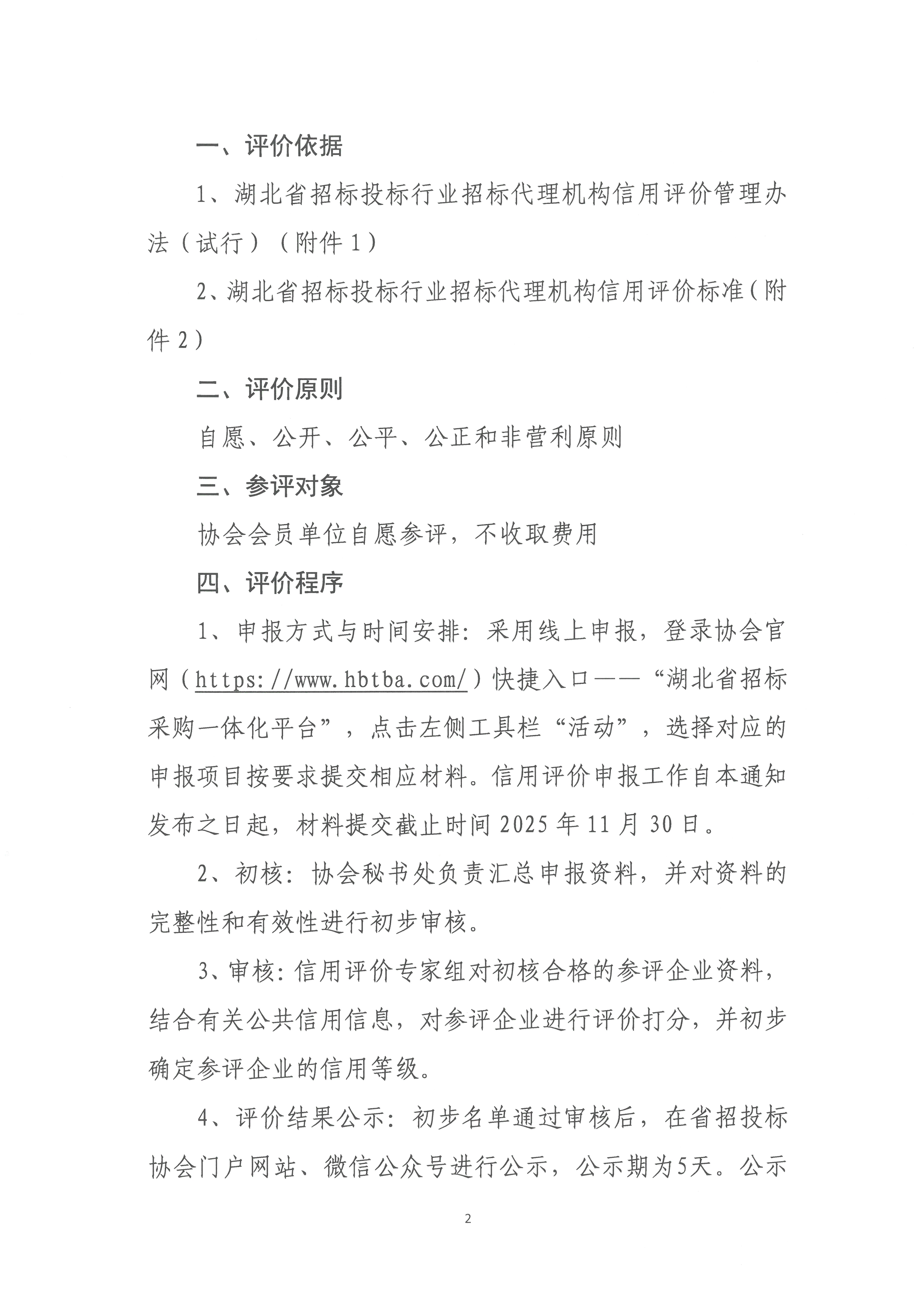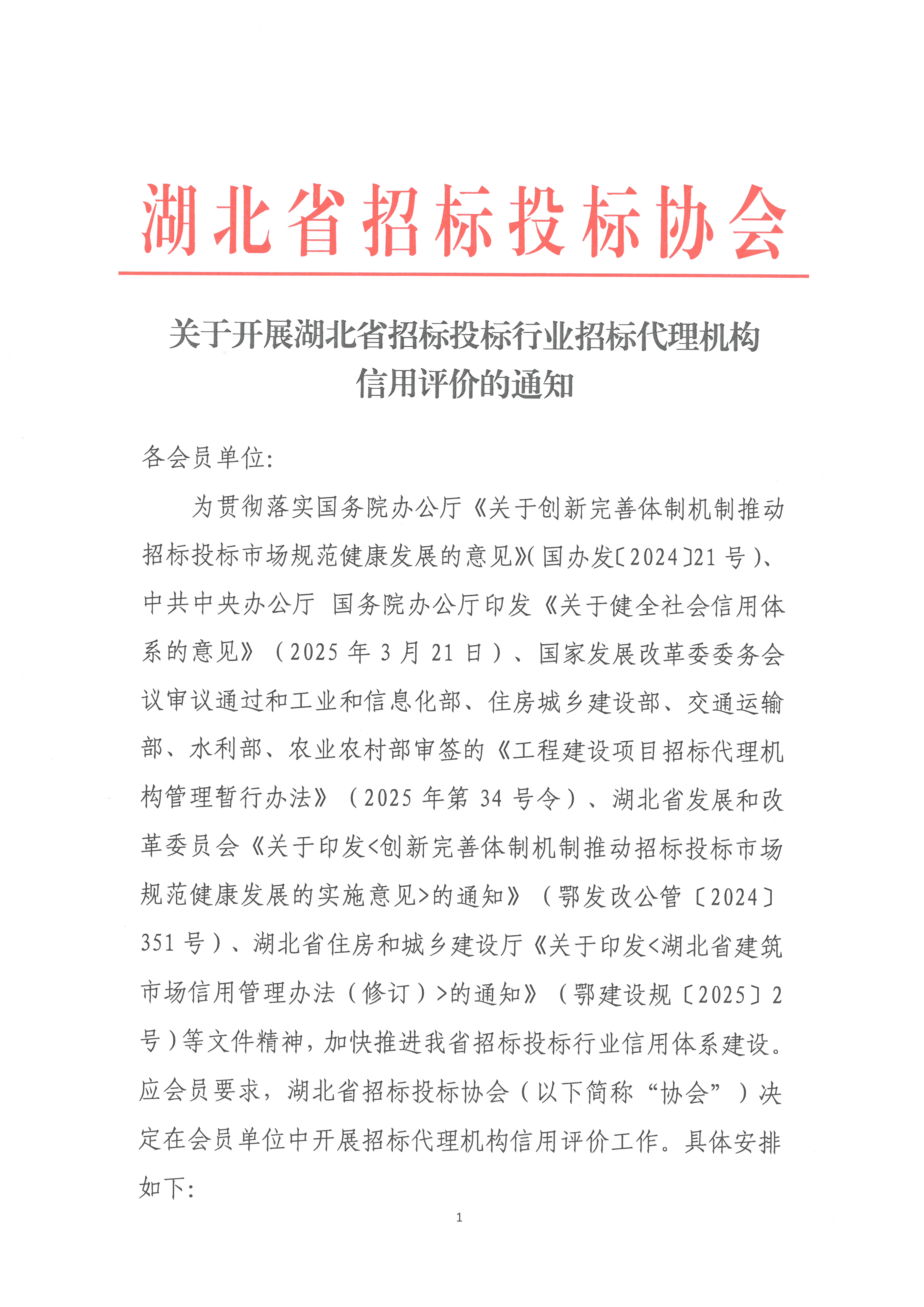 1、关于开展湖北省招标投标行业招标代理机构信用评价的通知