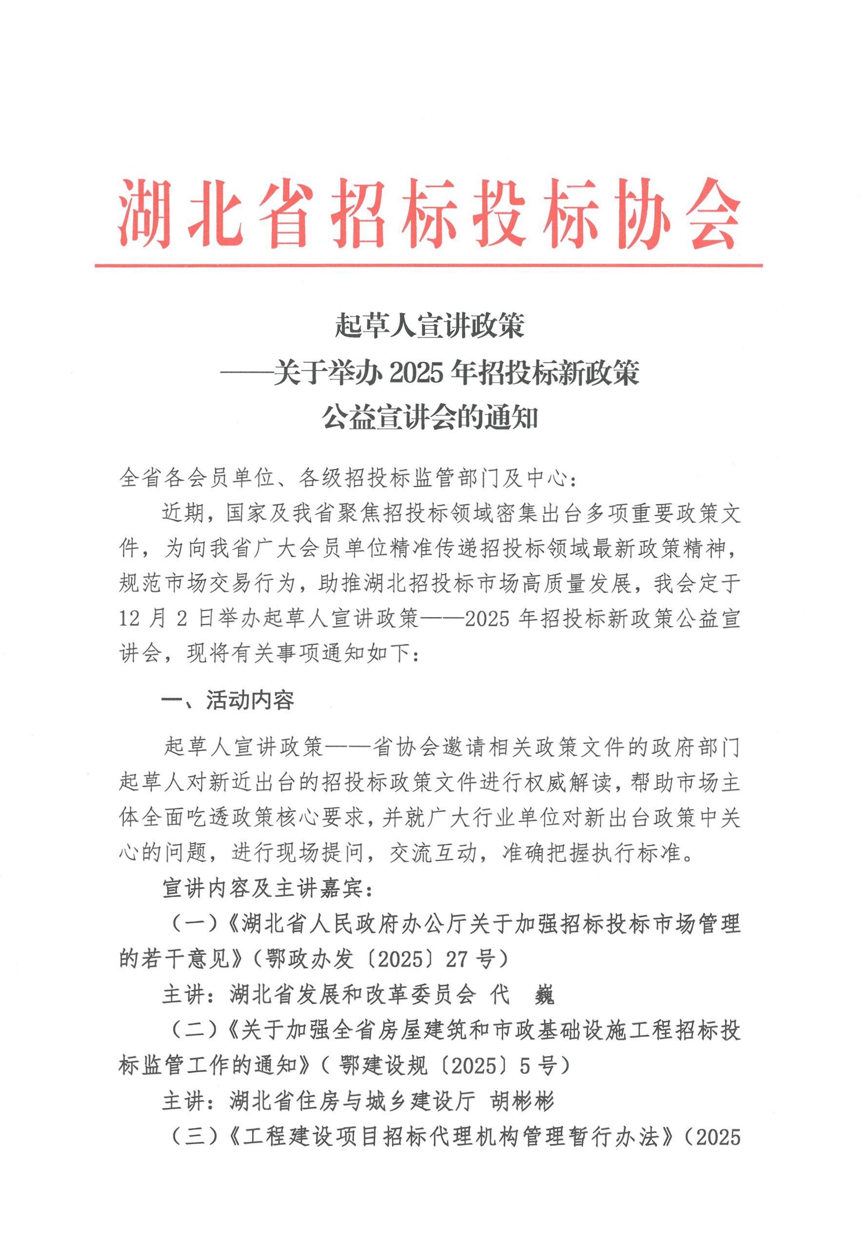 起草人宣讲政策——关于举办2025年招投标新政策公益宣讲会的通知